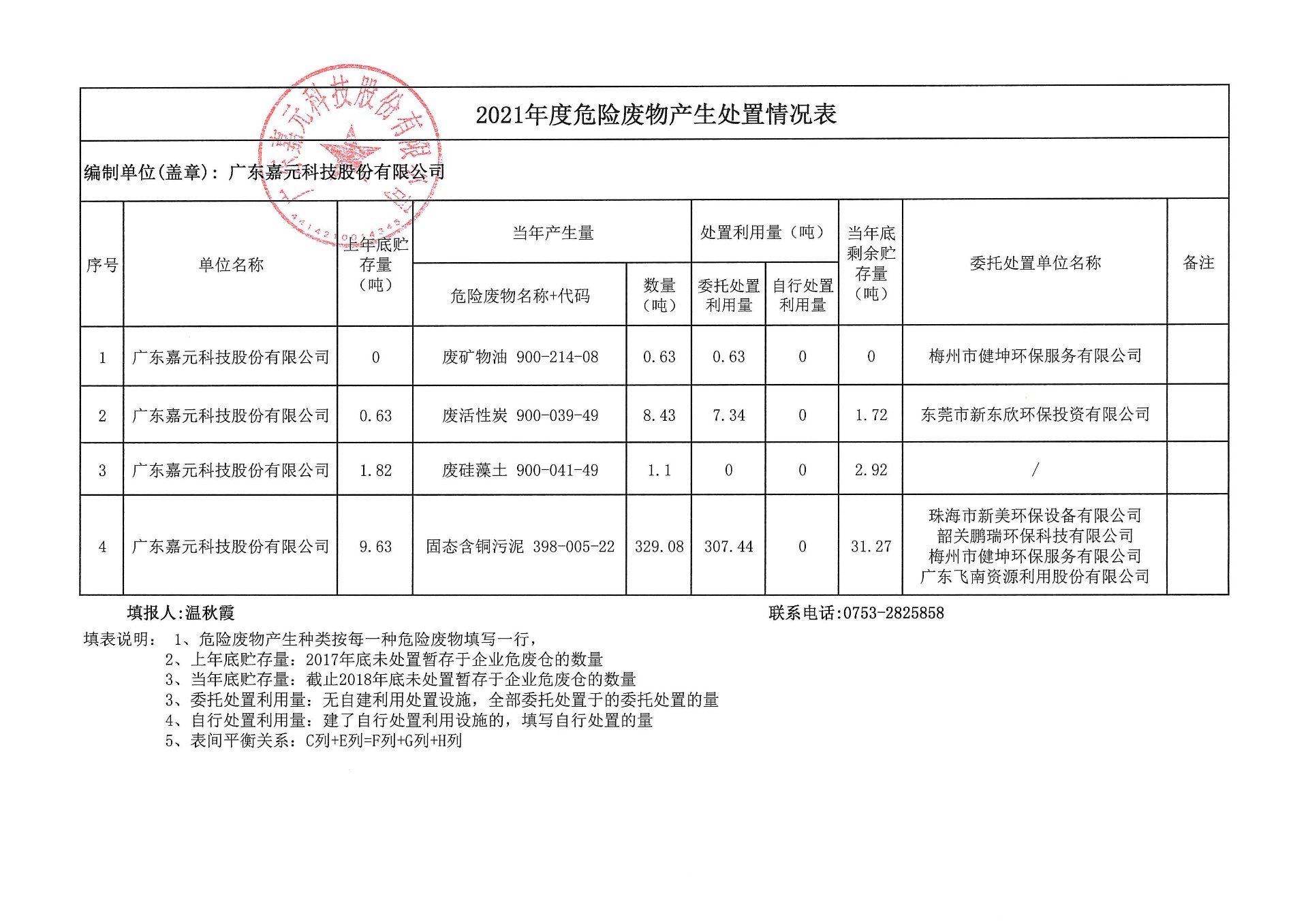 廣東嘉元科(ke)技股份有(you)限公司現將國家排污許可證中固廢污染防(fang)治信息(xi)進(jin)行公示