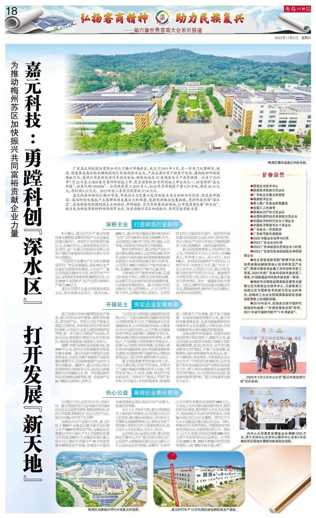 嘉(jia)元科技積極響(xiang)應梅州市委(wei)、市政府大力(li)發(fa)(fa)(fa)展以先進(jin)制造(zao)業為(wei)主體的(de)實體經濟、促(cu)進(jin)我市銅箔-高端印制電路(lu)板(ban)產業集群加快(kuai)發(fa)(fa)(fa)展壯大的(de)部署,堅持創新(xin)(xin)(xin)(xin)驅動發(fa)(fa)(fa)展戰略,勇蹚科技創新(xin)(xin)(xin)(xin)“深(shen)水(shui)區”,在做(zuo)精做(zuo)優做(zuo)強銅箔主業的(de)同(tong)時,開(kai)辟儲能(neng)、光伏(fu)等新(xin)(xin)(xin)(xin)賽道新(xin)(xin)(xin)(xin)領(ling)(ling)(ling)域,打開(kai)高質(zhi)量發(fa)(fa)(fa)展“新(xin)(xin)(xin)(xin)天地”,致力(li)成為(wei)新(xin)(xin)(xin)(xin)能(neng)源新(xin)(xin)(xin)(xin)材料(liao)領(ling)(ling)(ling)域領(ling)(ling)(ling)軍企業,為(wei)推動梅州蘇區加快(kuai)振興、共同(tong)富裕(yu)貢獻力(li)量。
