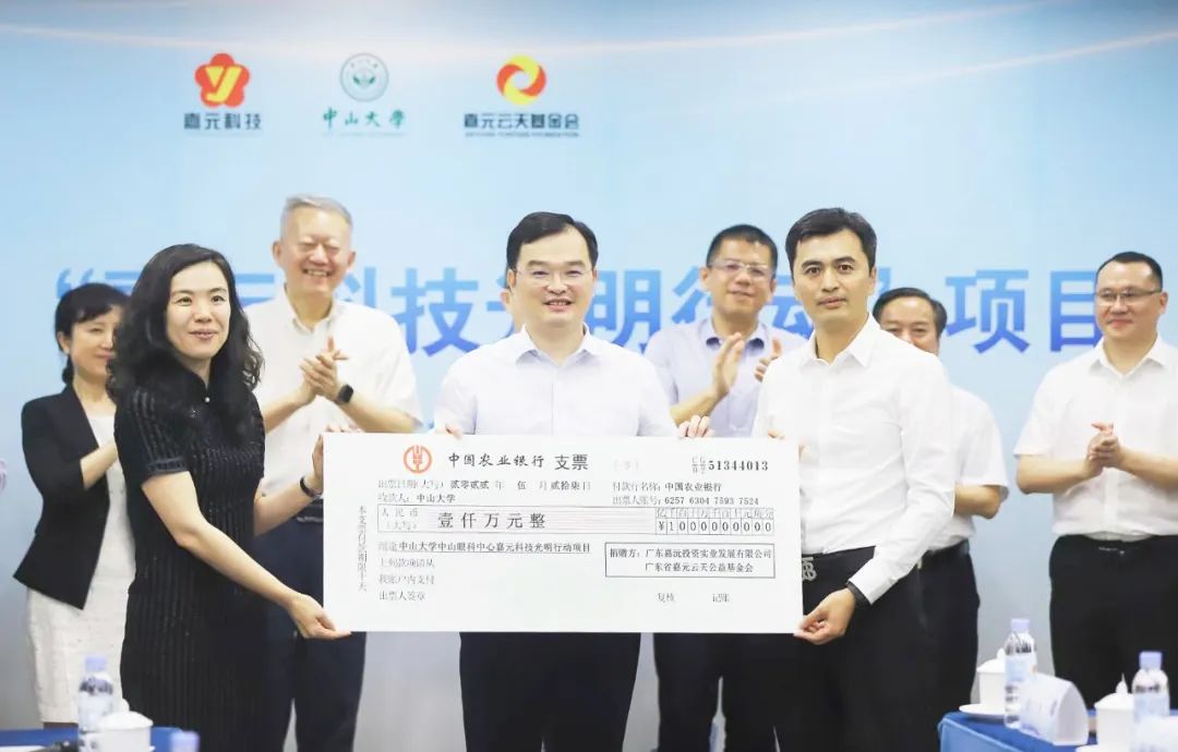 嘉元科(ke)技向中(zhong)山大(da)學教育發(fa)展基(ji)金會捐贈(zeng)1000萬元,用于支持中(zhong)山大(da)學中(zhong)山眼(yan)科(ke)中(zhong)心未來5年在梅州蘇區等地開展眼(yan)科(ke)疾病防治項(xiang)目。