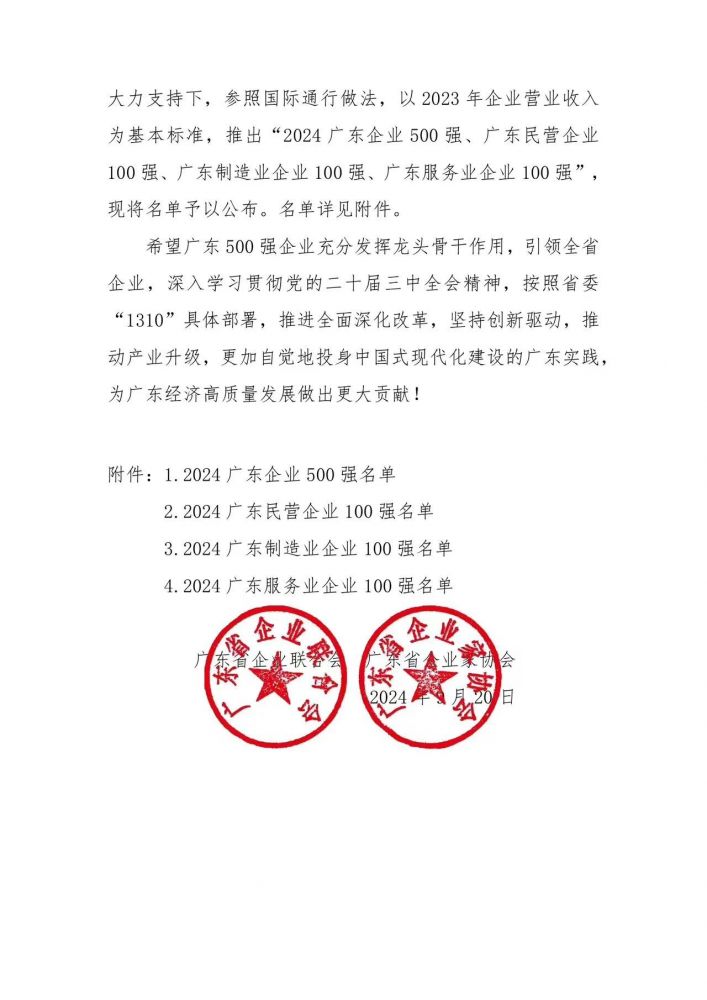 9月(yue)20日,廣東(dong)省(sheng)企(qi)業(ye)聯合會(hui)(hui)、廣東(dong)省(sheng)企(qi)業(ye)家協會(hui)(hui)在廣州(zhou)召開以“推進全面深(shen)化改革(ge),建設世界(jie)一流(liu)企(qi)業(ye)”為主(zhu)題的(de)2024廣東(dong)500強企(qi)業(ye)發(fa)展大會(hui)(hui),正式(shi)向社會(hui)(hui)發(fa)布了“2024廣東(dong)企(qi)業(ye)500強”等多個榜(bang)單及(ji)其分析報告(以下(xia)簡稱“《報告》”)。廣(guang)東嘉元(yuan)科技股份(fen)有限公司(si)榮(rong)登榜(bang)單,位列第360位,連續兩年獲(huo)得該(gai)榮(rong)譽。